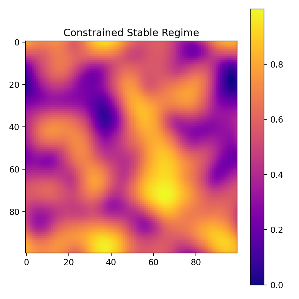 Different regimes are explored by selectively activating or removing key components: diffusion, memory, constraint, and directional asymmetry. This allows direct observation of the conditions under which structure emerges or disappears.