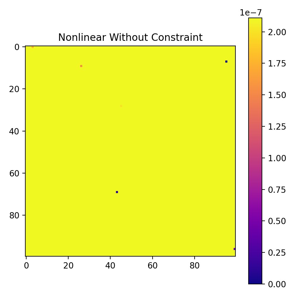 Nonlinearity alone leads to saturation and loss of structure. Constraint is required to maintain organization.